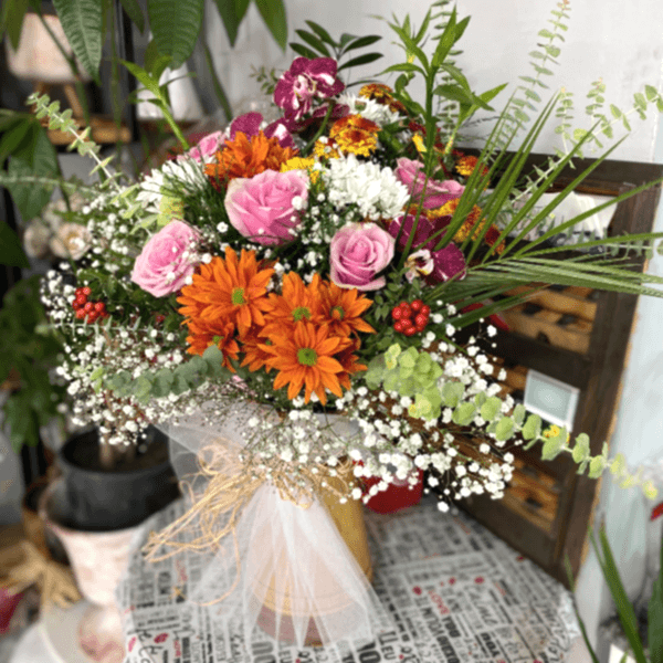 MEVSİM ÇİÇEKLERİ İLE HAZIRLANMIŞ ŞIK VAZOLU ARAJMAN